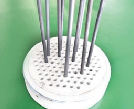該系列型圓塊孔式石墨換熱器為目前較為先進(jìn)、性能較優(yōu)越的一種設(shè)備, 采用先進(jìn)的加工工藝制作。圓柱體換熱塊 采用標(biāo)準(zhǔn)單元塊,在石墨塊上鉆有兩組不相通的流道,且相互成直角。石墨件間采 用聚四氟乙稀密封,加裝壓力彈簧作熱脹 冷縮自動(dòng)補(bǔ)嘗裝置,具有結(jié)構(gòu)強(qiáng)度高,耐 溫耐壓性能強(qiáng).抗沖擊性能好,傳熱效率 高、使用壽命長(zhǎng)、便于檢修等優(yōu)點(diǎn)。本系列產(chǎn)品可用作加熱器、冷卻器、冷凝器。作冷凝器用時(shí)底部需要加裝氣液分離器,